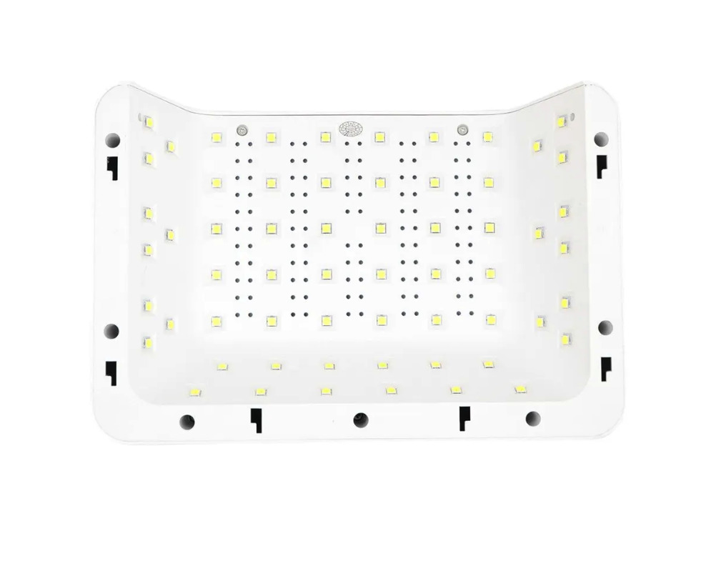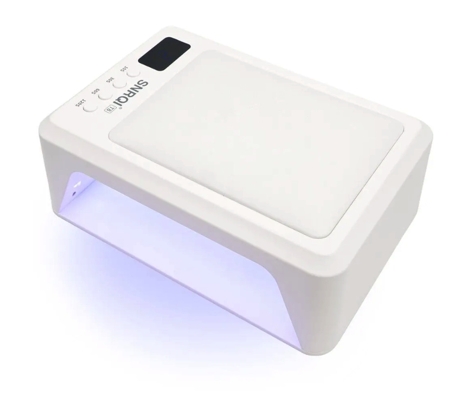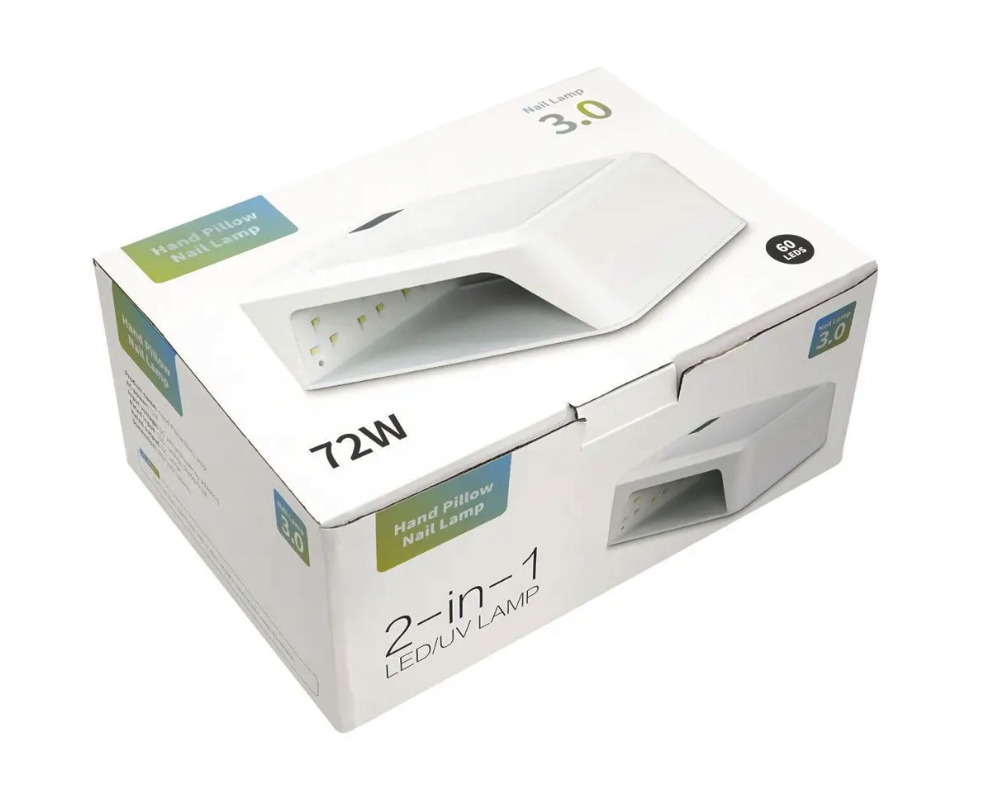 Мощная модель лампы для сушки ногтей на две руки с подушкой для руки клиента - SNRQI T8-A. Лампа разработана в основном для салонов красоты, но при желании вы можете использовать её и в домашних условиях, если делаете маникюр, например, не только себе. Шестьдесят светодиодов общей мощностью в 72 ватта позволяют очень быстро и качественно просушивать все виды гелей и гелевых лаков.